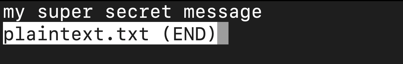 Screenshot of what running "less plaintext.txt" looks like for the RSA demo